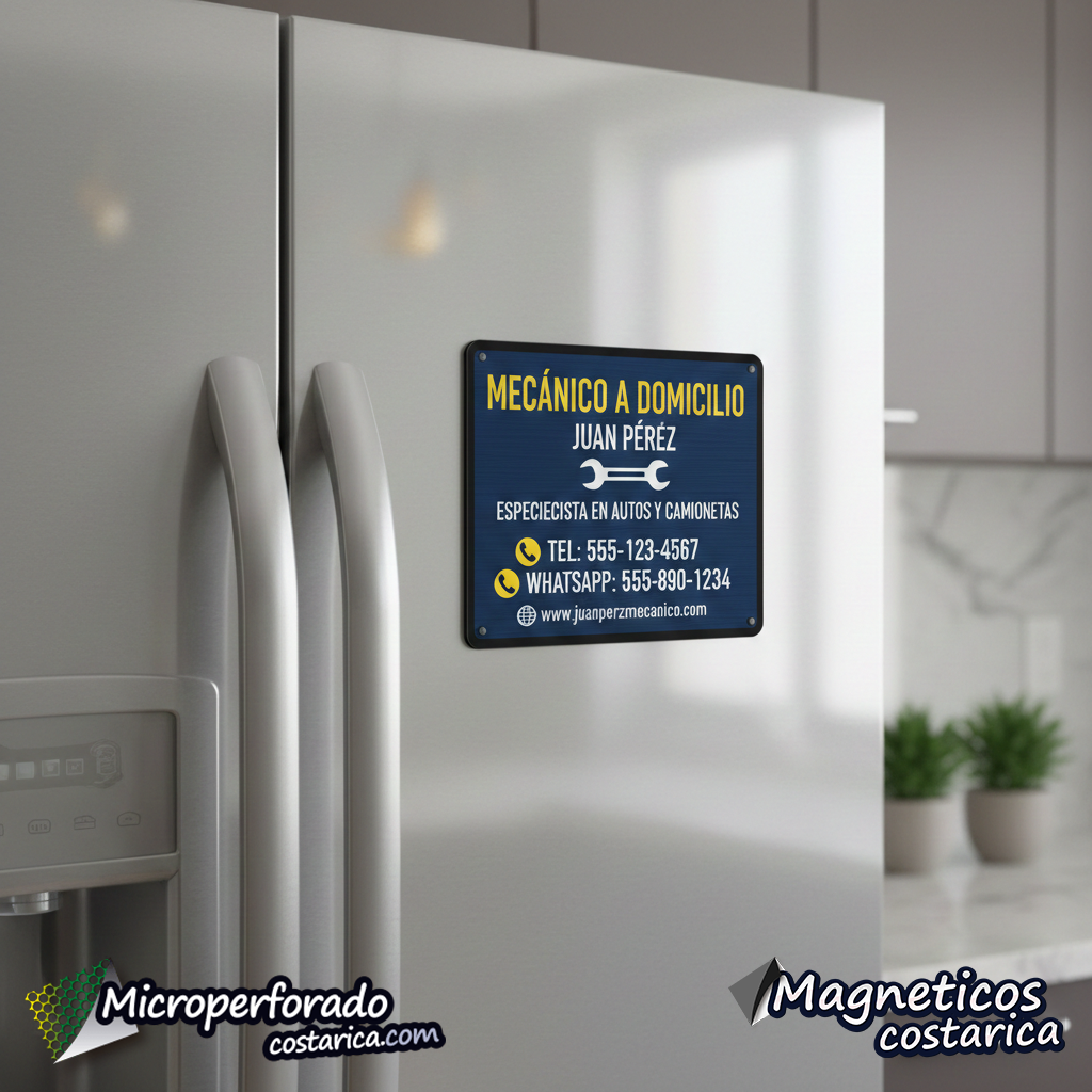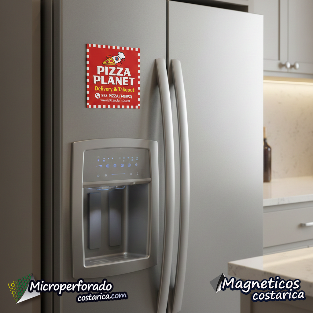 Los magnéticos publicitarios son láminas de material imantado que permiten colocar logos, promociones o información en cualquier superficie metálica como:
