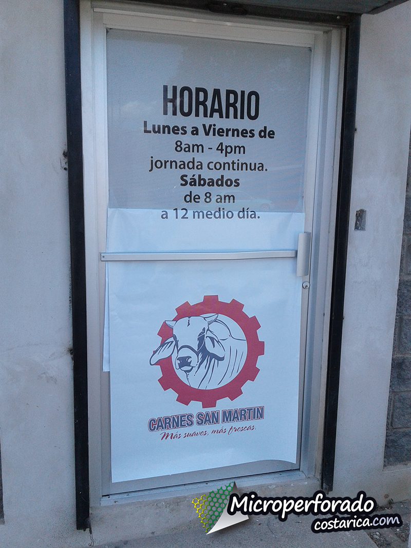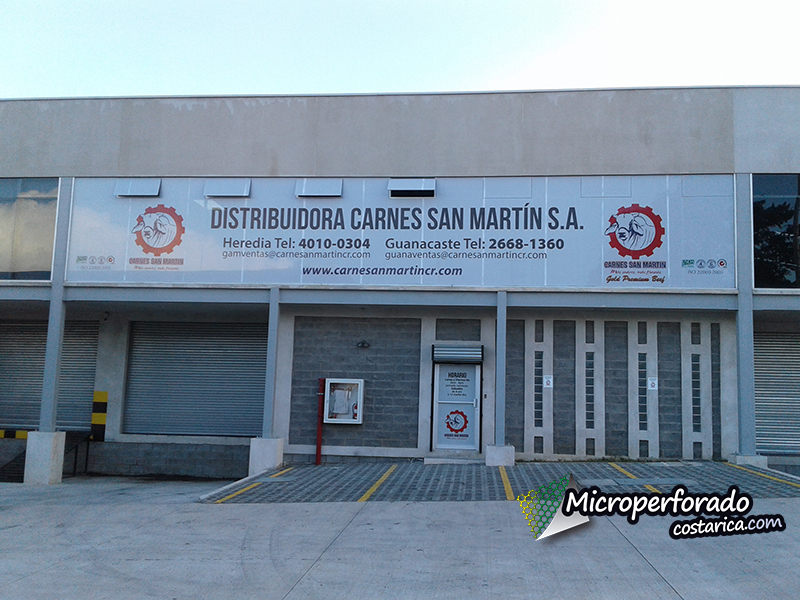 Un día excelente fue el día que instalamos los microperforados en Carnes San Martin Heredia, el Clima fue perfecto, no hubo mucho viento y todo se prestó para obtener el resultado esperado… La publicidad para la cede de Carnes San Martin en Heredia. Cliente satisfecho todos contentos