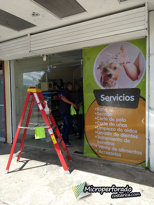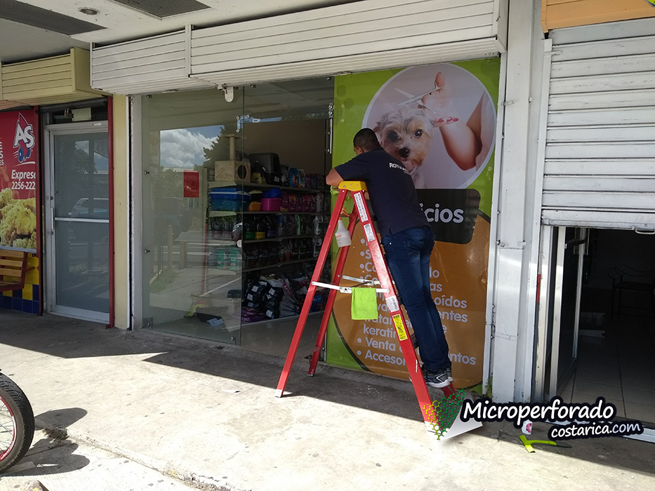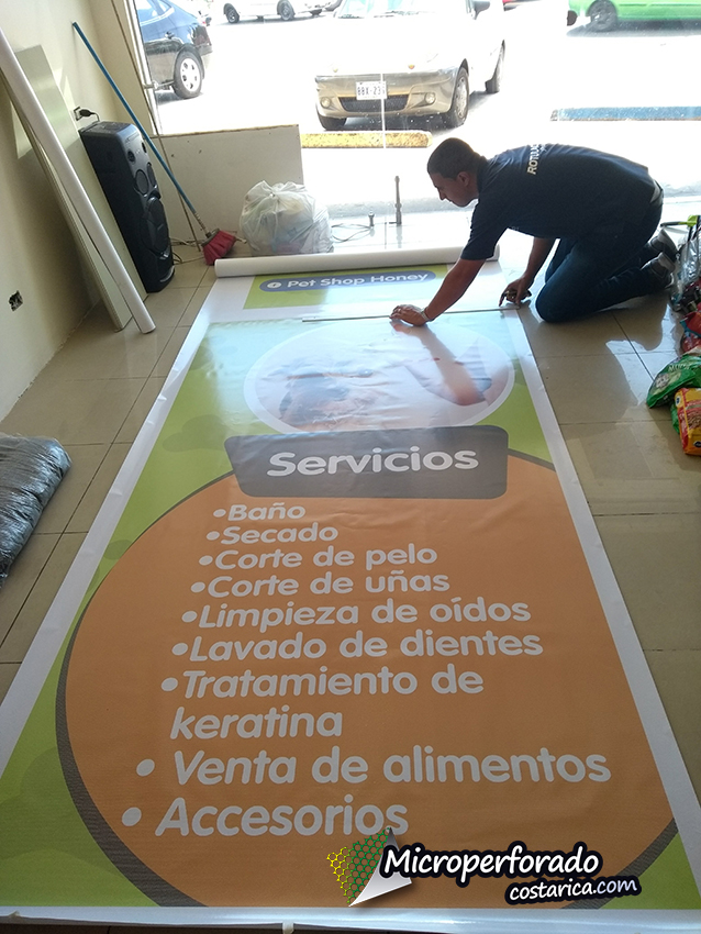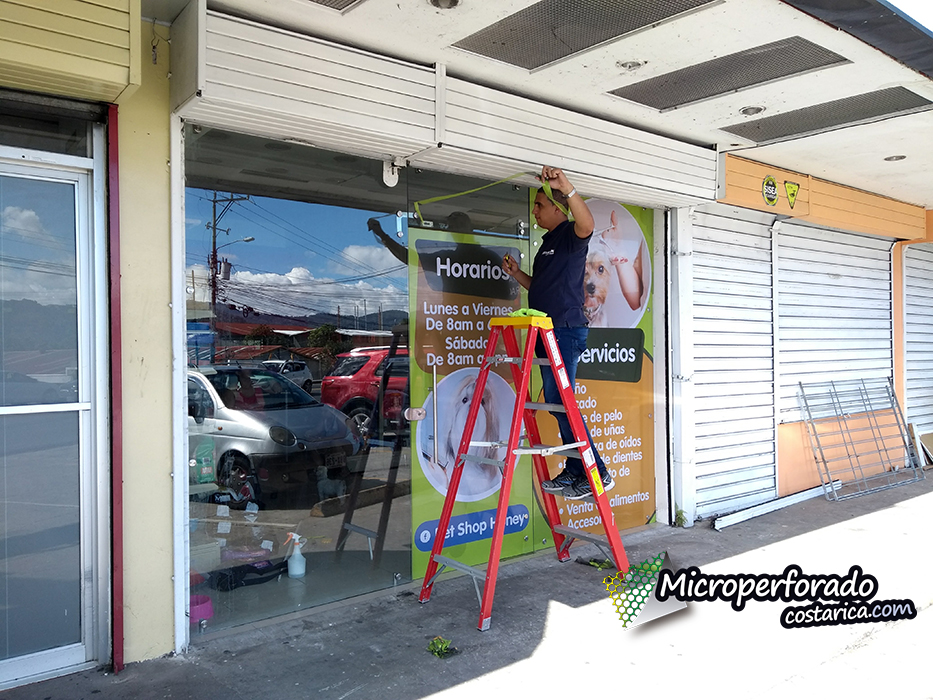 Les presentamos la instalación del microperforado en el proyecto Pet Shop Honey de curridabat en el cual tuvimos participación en la instalación de los adhesivos microperforados.