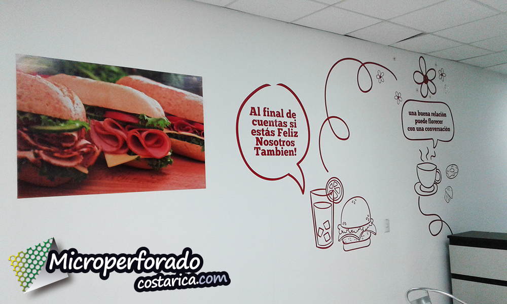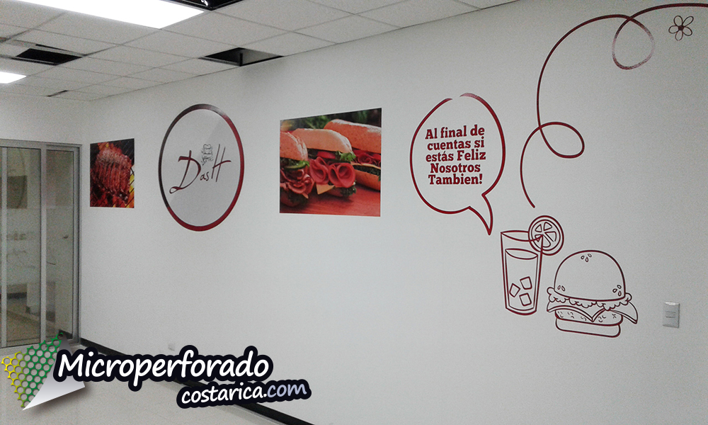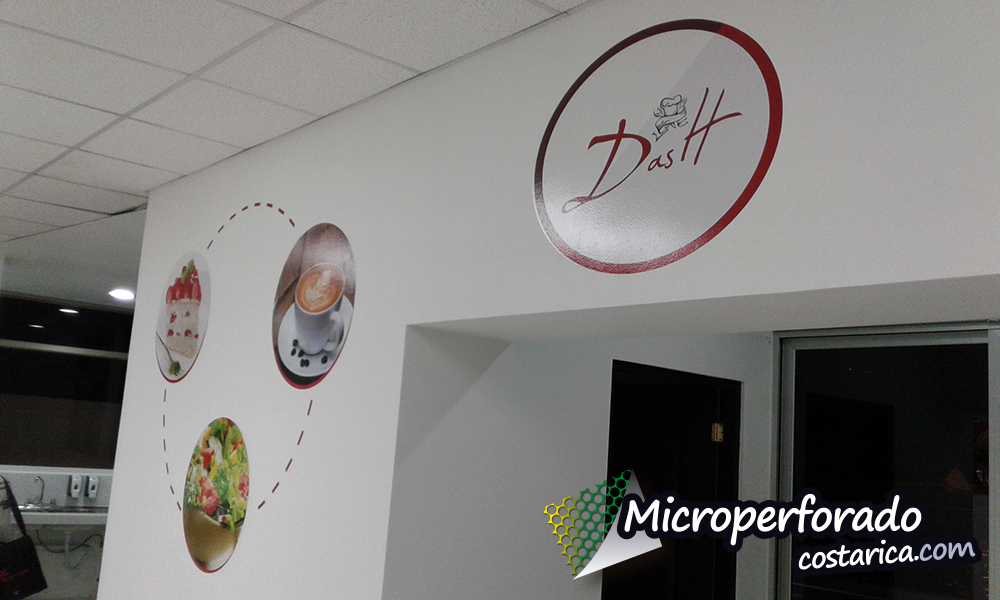 Les presentamos el proyecto de Rotulación total en Local Dash Lindora. En este proyecto utilizamos distintos tipo de rotulación entre ellas, Sandblasting para las puertas con precorte, Vinil adhesivo impreso con precorte para las imágenes en de la pared y además vinil de color con precorte para las figuras.