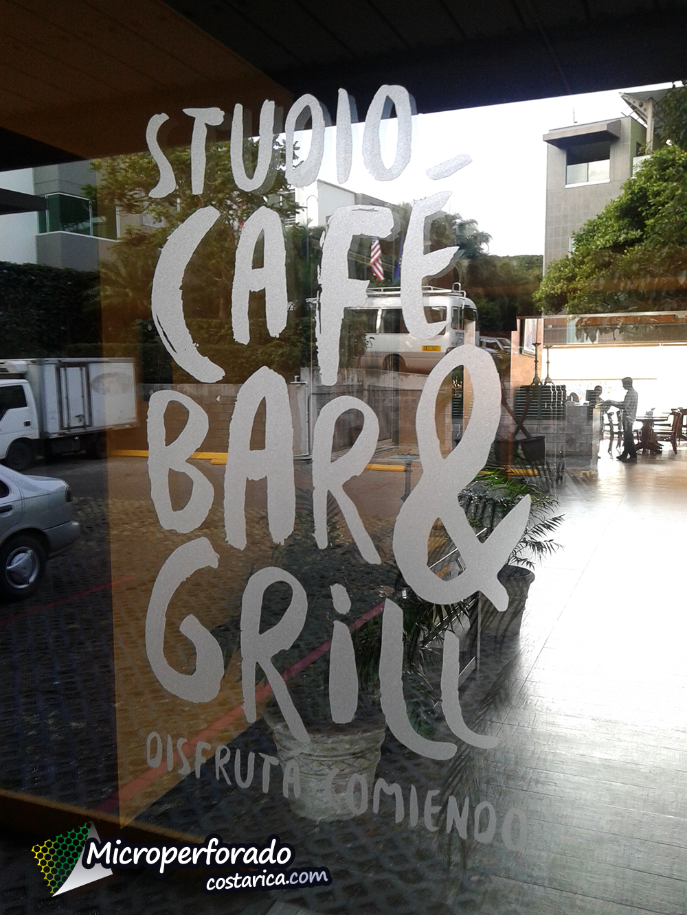 Ante el peligro de unos vidrios tan transparentes e innotables en Studio Hotel nos solicitaron esta pequeña pero agradable rotulación de ventanas, a continuación les presentamos el proyecto en Sandblasting en vidrio para Studio Hotel.